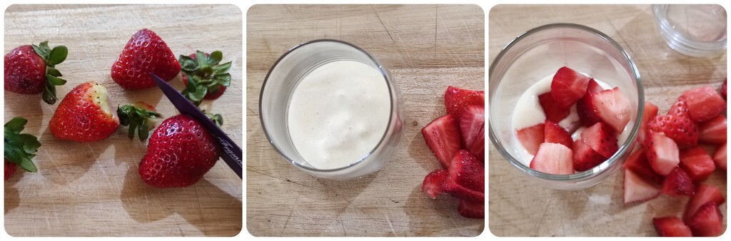 • Lavez et séchez les fraises qui seront coupées en tranches.