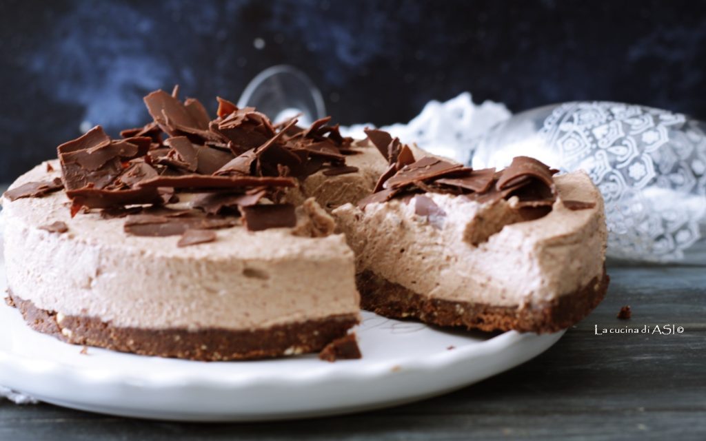 La recette d’aujourd’hui que vous trouverez juste après la photo et les ingrédients est celle du cheesecake double chocolat, un dessert sans cuisson avec du cacao dans la partie biscuitée, des chocolats au lait et noirs fondus et une pluie de chocolats hachés en guise de décoration.