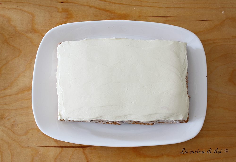 Coupez le dessert facile et rapide sans cuisson avec la garniture blanche en l’étalant bien sur toute la surface.