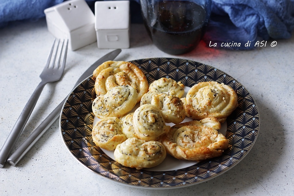 Dans le réfrigérateur, il restait un paquet de pâte feuilletée et pour le déjeuner j’ai pensé me préparer des feuilletés salés aux graines mixtes avec sésame et pavot, des petites choses rapides et appétissantes.