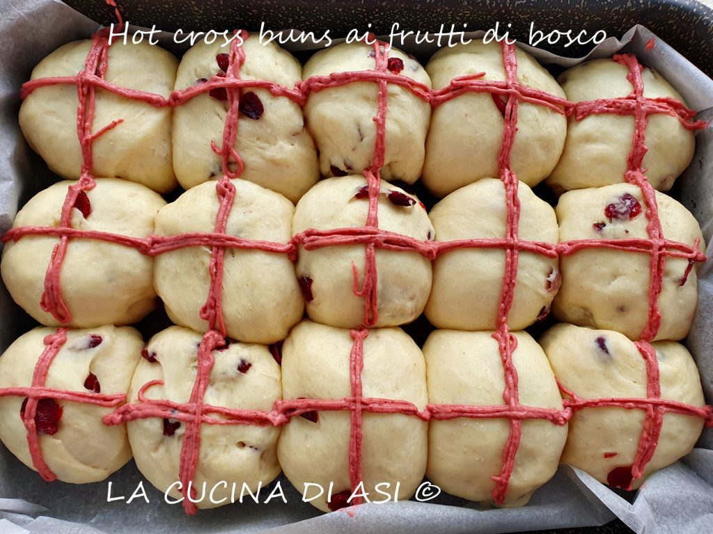 Cela faisait longtemps que j’avais la recette des hot cross buns variante aux fruits rouges en attente, pour ainsi dire, et vu qu’ils sont des petits pains typiques anglais et de Pâques, j’ai pensé bien les cuisiner aujourd’hui dans ma cuisine!