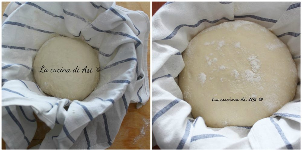 Mettons dedans le pain facile à faire sans pétrissage obtenu après pliages et autres, saupoudrons avec un peu plus de farine et fermons les bords du tissu et laissons lever pendant 90/120 minutes ou jusqu’à ce qu’il ait doublé de volume.
