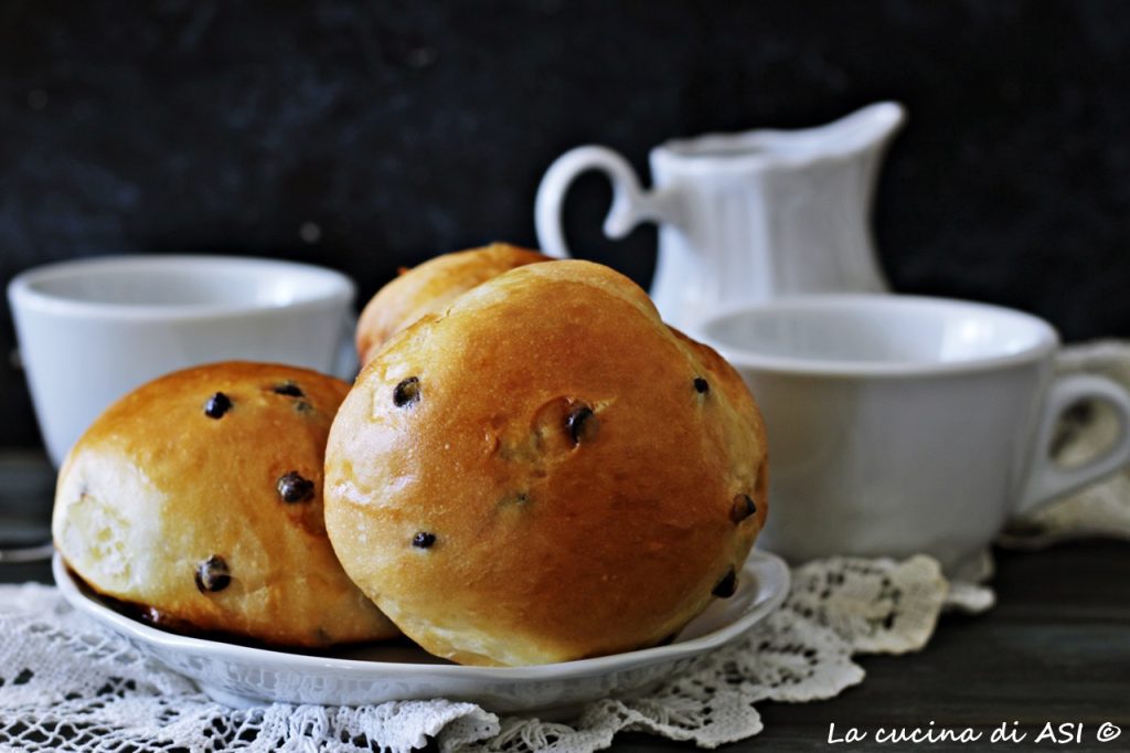 J’ai ajouté quelques grammes de pépites de chocolat à celles déjà indiquées par Simone car elles me semblaient peu eh eh et le résultat est vraiment exquis et comme vous le voyez sur la photo les petits pains maison ont une belle levée !