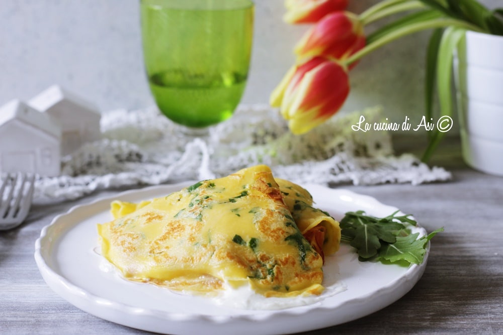1) Vous n’aimez pas le goût prononcé de la roquette ? Nous pouvons aromatiser la pâte des crêpes avec un hachis d’herbes aromatiques mélangées comme le basilic, le persil, mais aussi la ciboulette…