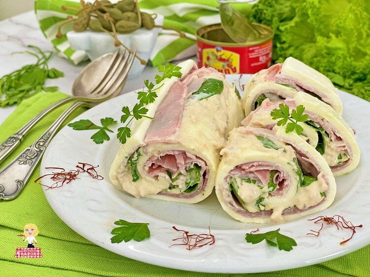 Aujourd’hui, parmi les nombreuses variantes possibles, nous allons farcir le Feuilleté de Mozzarella avec mon « remplissage » préféré: Sauce Tonnata, jambon cuit et laitue, un grand classique qui, pour cette raison, rencontre toujours un grand succès.