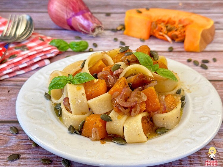 PÂTES avec POTIRON et OIGNONS ROUGES de TROPEA