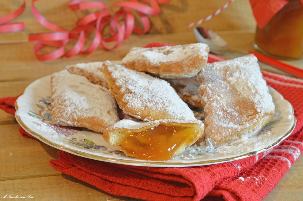 Un des desserts typiques du Carnaval est les RAVIOLIS SUCRÉS, une pâte friable qui renferme un moelleux fourrage de Nutella ou de Confiture (ou Marmelade), qui sont habituellement frits dans l’huile.