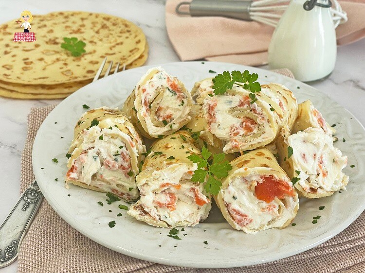 Un avantage de cette recette de Rouleau de Crêpes au Saumon est que vous pouvez préparer les bases (crêpes) même la veille et les garnir juste avant de les servir pour ne pas être pressé à l’heure du dîner et profiter pleinement de la soirée.