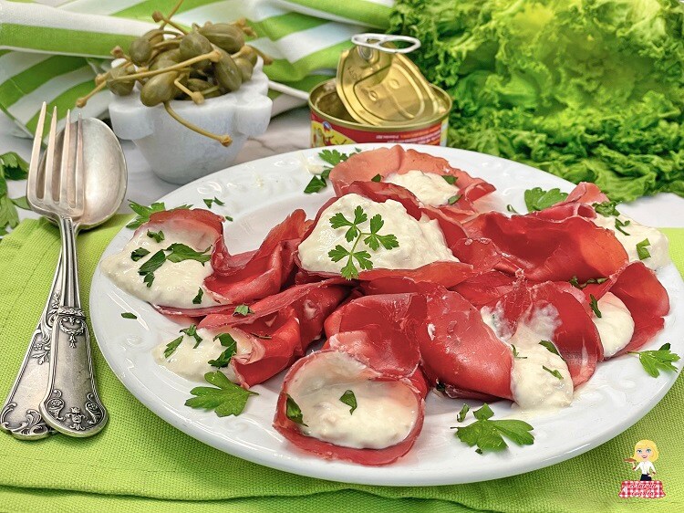 Dans cette recette, nous verrons comment préparer ensemble les Rouleaux de BRESAOLA à la sauce tonnato, une entrée savoureuse, facile et rapide à réaliser que vous pourrez mettre sur la table en moins de 15 minutes !