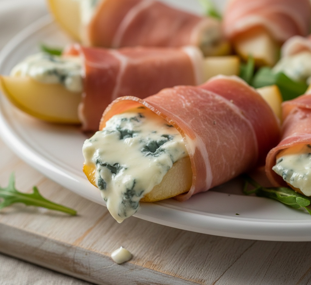 Rouleaux de poires au jambon et gorgonzola : l’apéritif pour ceux qui n’ont pas envie (mais beaucoup de goût)