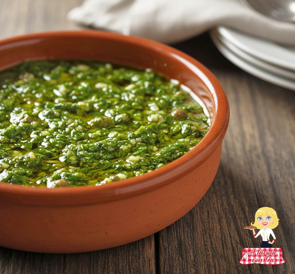 La Sauce Verte est à son apogée de saveur après les deux heures de repos, mais a tendance à s’oxyder avec le temps. Pour une conservation optimale de la couleur verte brillante, voici un truc : une fois prête, transférez la sauce dans un bocal en verre stérilisé et couvrez la surface d’une généreuse couche d’Huile EVO. Cette couche d’huile scellante empêche le contact du persil avec l’air, bloquant l’oxydation et maintenant la couleur vibrante.