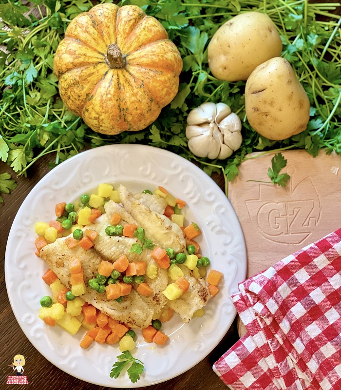 Aujourd’hui je mise sur la rapidité et la praticité : pas de four, seulement la poêle. Ainsi, vous pourrez servir en peu de temps un second plat de poisson léger et savoureux, accompagnement compris.