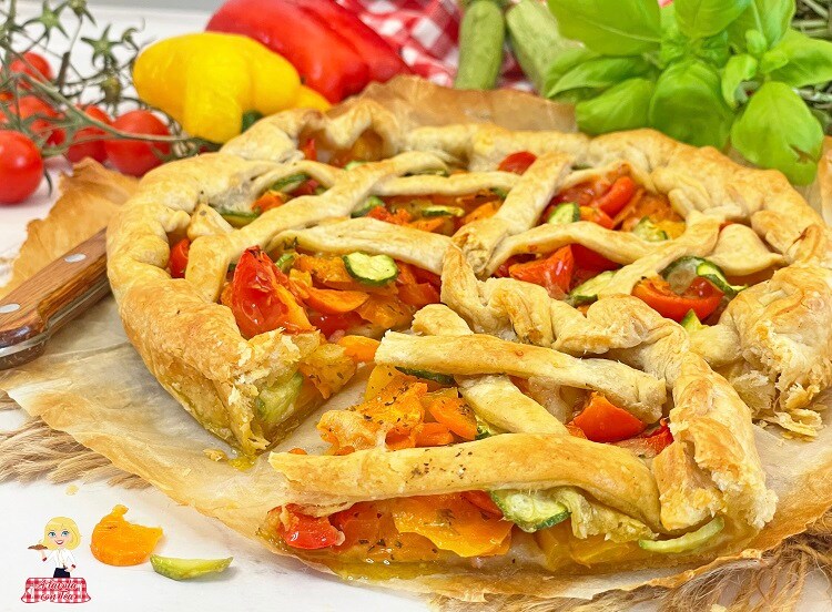 La Tarte aux légumes est une tarte salée réalisée avec de la pâte feuilletée déjà prête, j’ai choisi celle intégrale, et une garniture à base de poivrons, courgettes, carottes et tomates, enrichie de scamorza fondante.