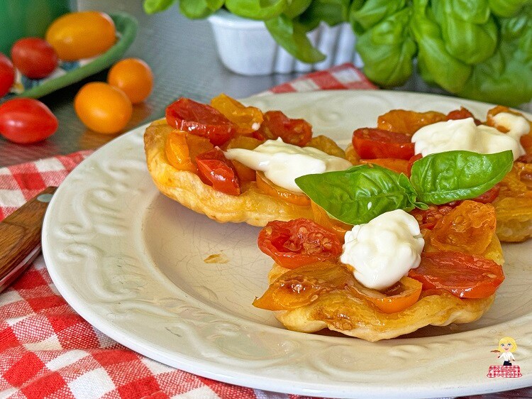 Une recette vraiment très facile et sans stress, surtout si l’on utilise la pâte feuilletée déjà prête, excellente avec les tomates cerises mais délicieuse aussi avec d’autres types de légumes comme les carottes, les courgettes ou les oignons.