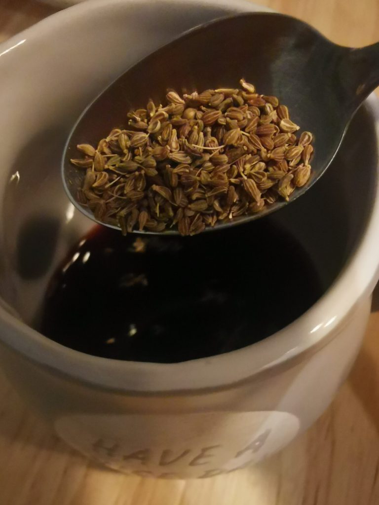 Tout d’abord, nous dosons le vin dans une petite cruche ou une petite mesure et nous ajoutons les graines d’anis.