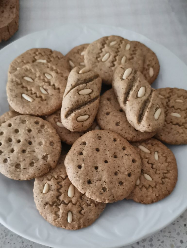 Comme vous le voyez sur les images, cette fois j’ai décoré le biscuit en passant dessus la roue, celle pour couper les bandes pour la tarte (pour comprendre).