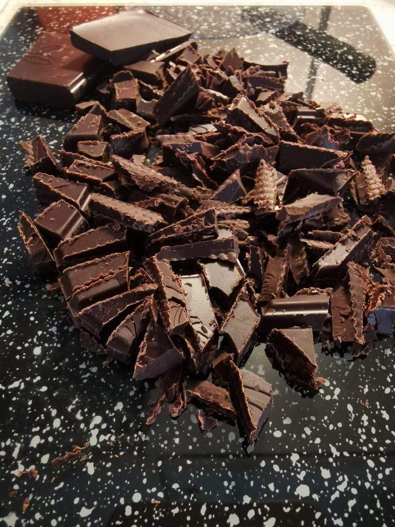 Si vous voulez, vous pouvez aussi utiliser des pépites de chocolat noir prêtes à l’emploi.