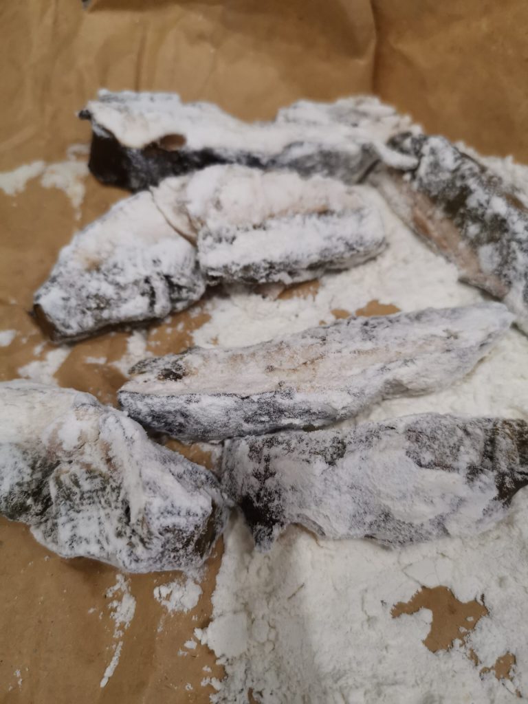 Étape 1 : après les avoir coupés en tranches, passez-les dans la farine.