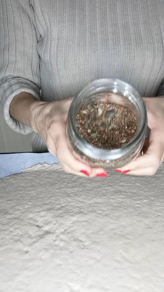 Une fois la pâte étalée, si vous les aimez, ajoutez des graines mélangées et une pincée de sel fin. J’adore le goût des graines, encore plus si elles sont grillées. Mettez au four préchauffé à 190 degrés, mode ventilé pendant environ 18 minutes. Après 15/16 minutes, vérifiez-la souvent, car étant si fine, même quelques minutes de cuisson supplémentaires pourraient la brûler.