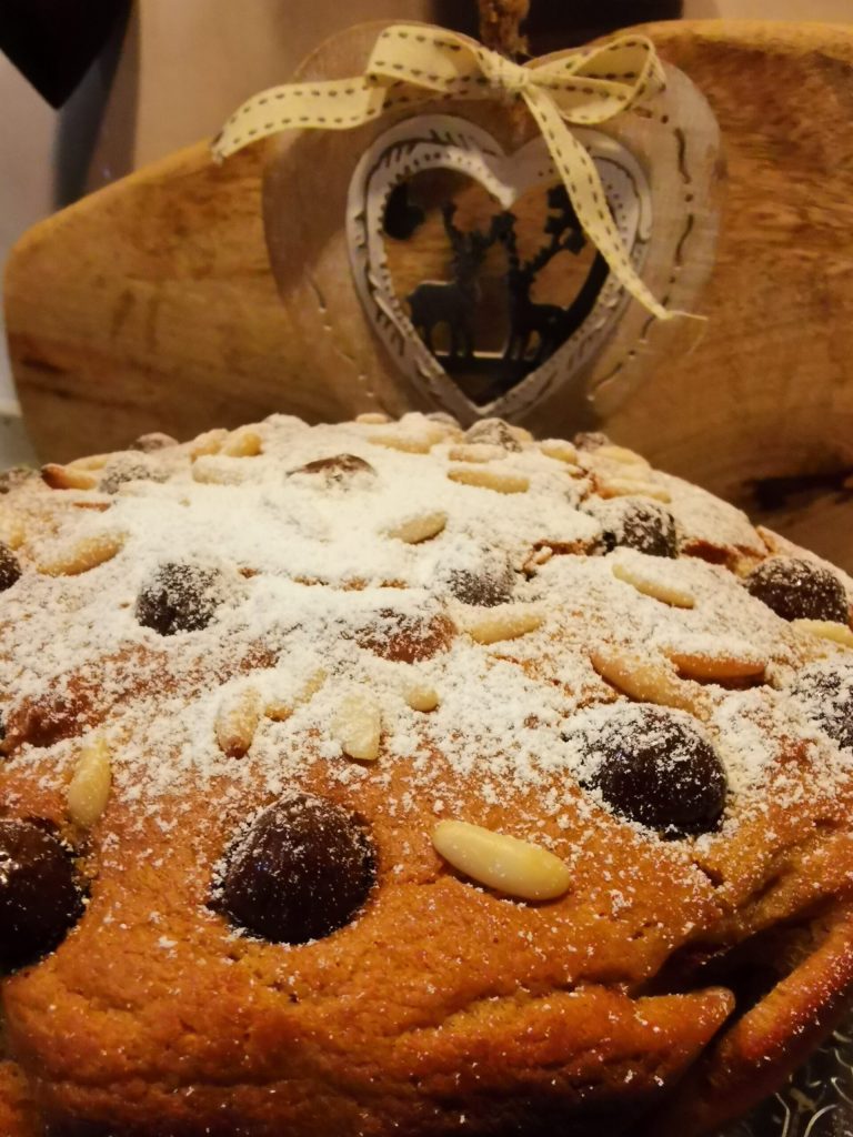 La décoration est toujours à notre goût, vous pouvez utiliser également des pépites de chocolat ou des éclats ou seulement des fruits secs, pignons de pin, amandes.