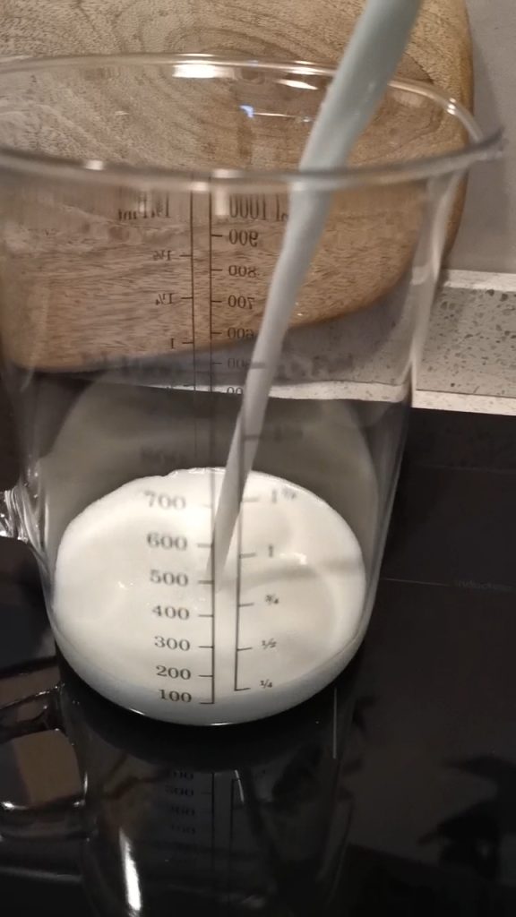 Dans le pichet doseur, mesurez la quantité de lait nécessaire, ajoutez le sel et mélangez.