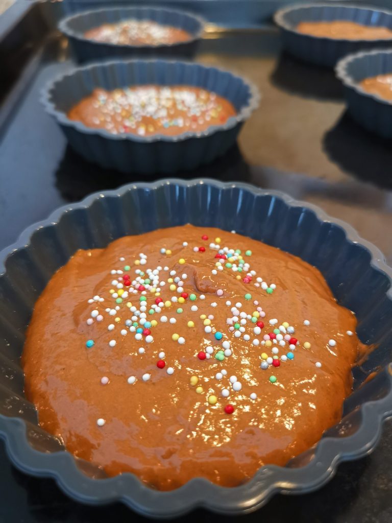Préparez les moules et si vous n’utilisez pas ceux en silicone, beurrez et farinez ceux en aluminium.
