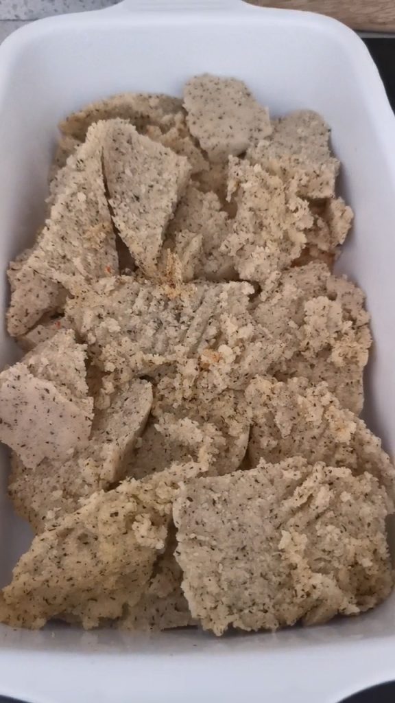 Conseil: cette polenta en couches avec ragoût ou fromage, mettez-la dans un récipient unique sans l’écraser.