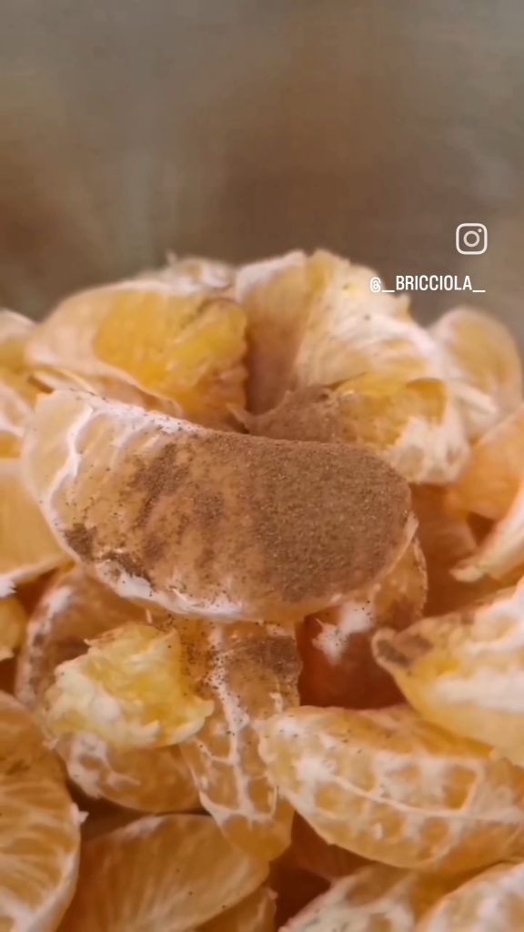 Mets les segments dans une petite casserole avec la cannelle, les deux cuillères à café d’eau, le sucre (qui peut être une, deux ou trois cuillères à café) pour une préparation plus sucrée.