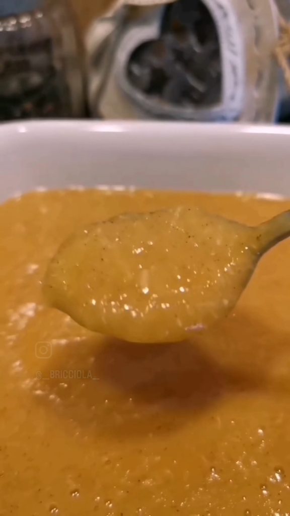 La purée pourrait avoir un léger arrière-goût amer car ensuite nous allons tout mixer, y compris la fine peau blanche que nous n’avons pas réussi à éliminer complètement.