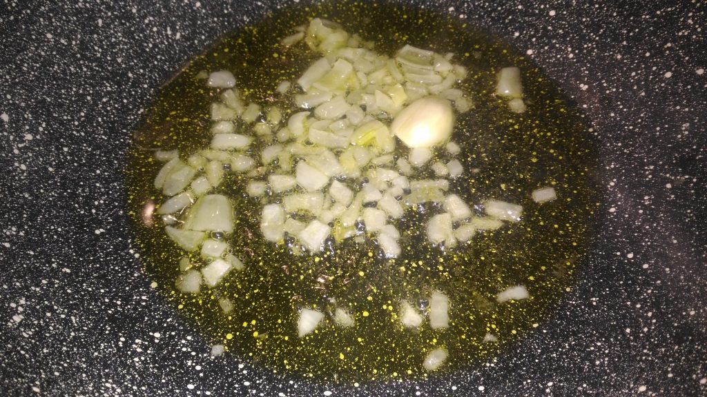 Maintenant, prenons la poêle et mettons-y 2/3 cuillères à soupe d’huile, si vous préférez même plus.