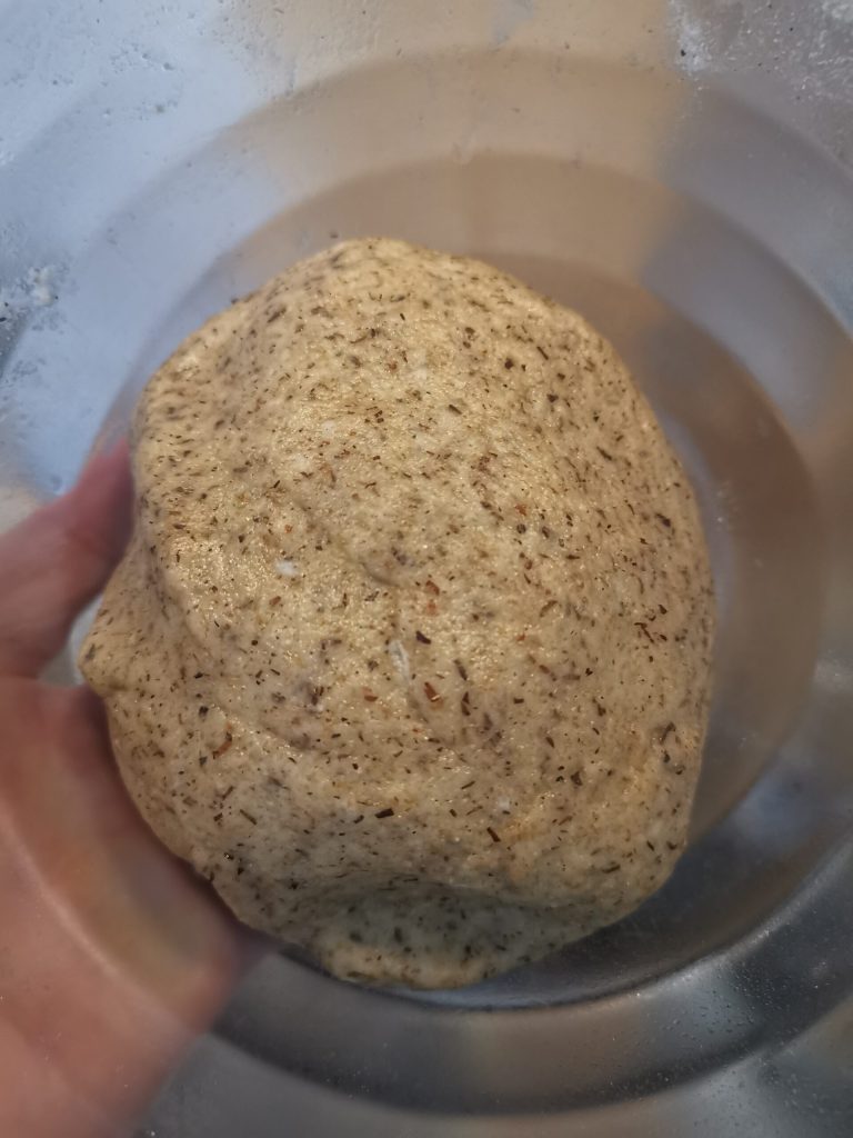La première étape consiste à réaliser la pâte, la pâte folle aux deux farines : sarrasin et l’autre celle que vous préférez le plus. J’utilise généralement des farines peu raffinées, de type 1 ou 2, d’épeautre ou de Kamut, mais choisissez la farine blanche qui vous convient le mieux et vous plaît. Dans mon cas, j’ai utilisé le type 1. La procédure pour réaliser la pâte folle est très simple. Mettez dans un récipient les farines, qui dans ce cas sont deux, et le sel. Mélangez et créez un puits au centre. Versez l’eau et l’huile à l’intérieur et commencez à remuer, récupérant petit à petit la farine des bords jusqu’à former la pâte comme vous le voyez sur la photo. Vous verrez qu’elle sera bien douce. Maintenant, prenez-la et mettez-la à reposer au réfrigérateur pendant une demi-heure.