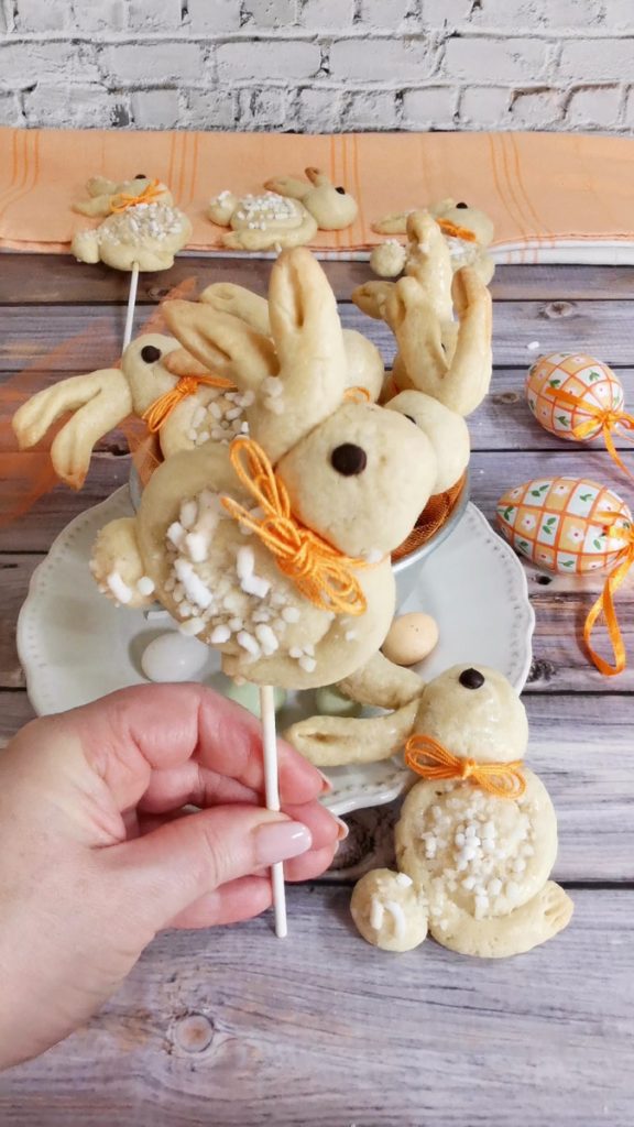 Les biscuits lapin se conservent frais dans une boîte en fer blanc, même pendant une semaine et peuvent être préparés aussi sans le bâtonnet.