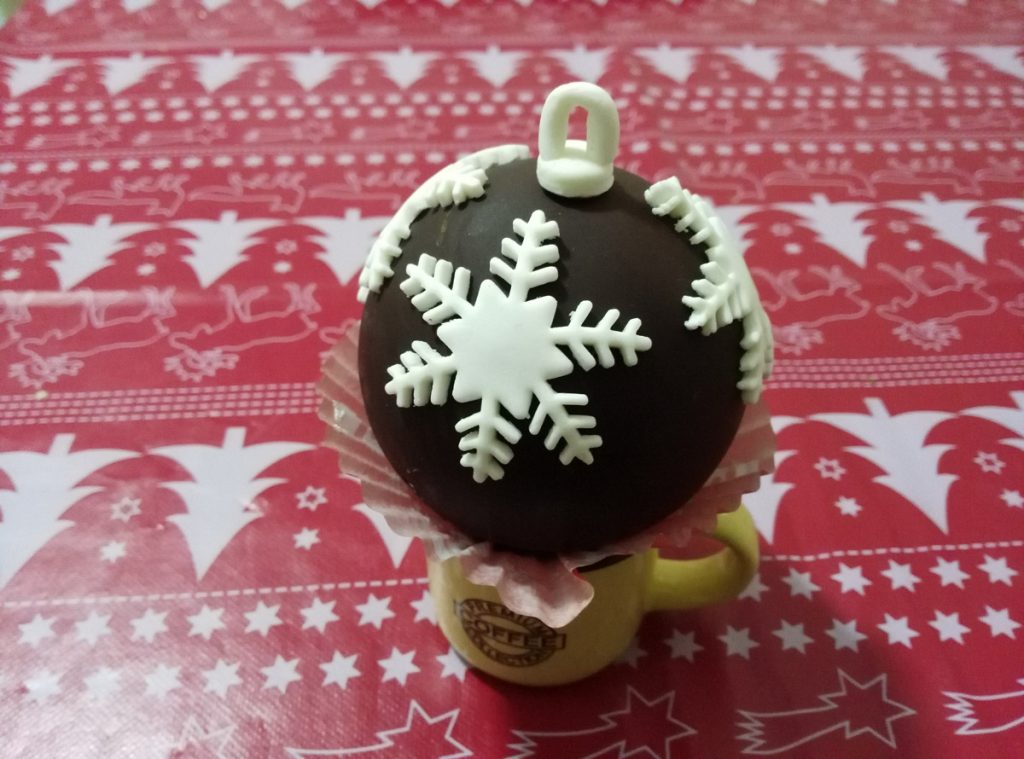 Pour finir, créez les décorations avec la pâte à sucre, étalez-la et avec les moules, découpez les flocons de neige ; puis brossez le flocon avec un peu de chocolat fondu et fixez la décoration à la boule de chocolat. Maintenant vos Boules de chocolat sont prêtes à être servies, ne sont-elles pas magnifiques ? 😉 Bon Appétit !