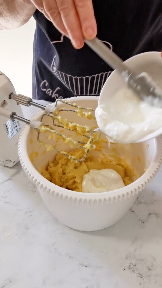 Quand ils sont prêts, ajoutez l’huile en filet et la farine tamisée en petites quantités, tout en continuant à travailler la pâte avec le fouet électrique.