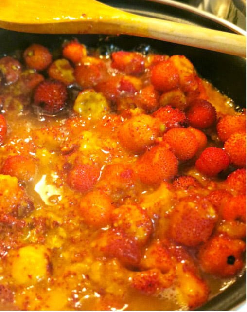 L’arbousier est une plante très ancienne, « un fruit presque oublié » typique de la région méditerranéenne. Il fleurit et fructifie en automne et en hiver. Cette plante pousse à l’état sauvage, mais peut également être cultivée comme plante ornementale dans votre jardin. Son fruit peut être comparé en forme et en couleur à une grosse cerise avec une chair charnue de couleur jaune. Si vous avez une plante dans votre jardin ou parvenez à trouver les fruits, je vous conseille d’essayer cette recette. En effet, il est difficile de trouver de la confiture d’arbouses en vente et même si c’était le cas, ce ne sera jamais comme de la faire maison. Le miel d’arbousier est également très précieux, typique de la Sardaigne, il a un goût particulier et inimitable. Mais maintenant, voyons comme il est facile de préparer cette délicieuse confiture de l’arbousier 😉