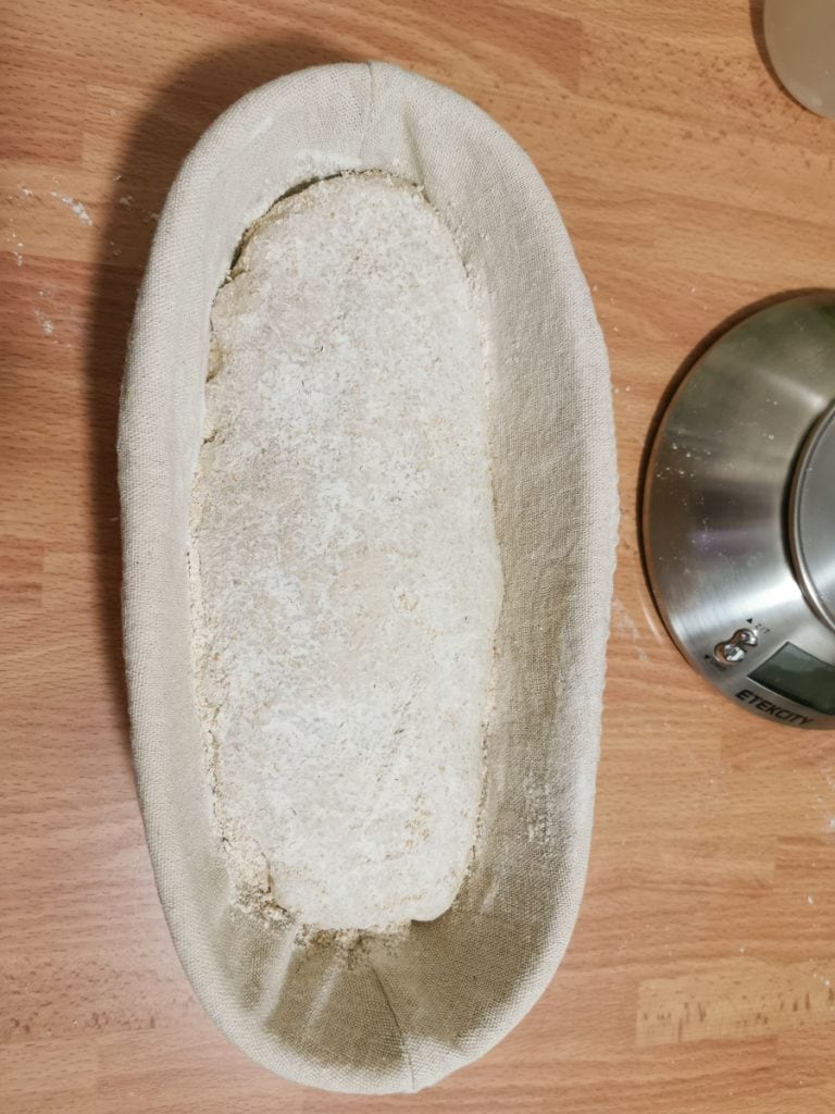 Formez un beau pain long et déposez-le dans un panier de levée, ou vous pouvez utiliser un bol recouvert de papier sulfurisé.