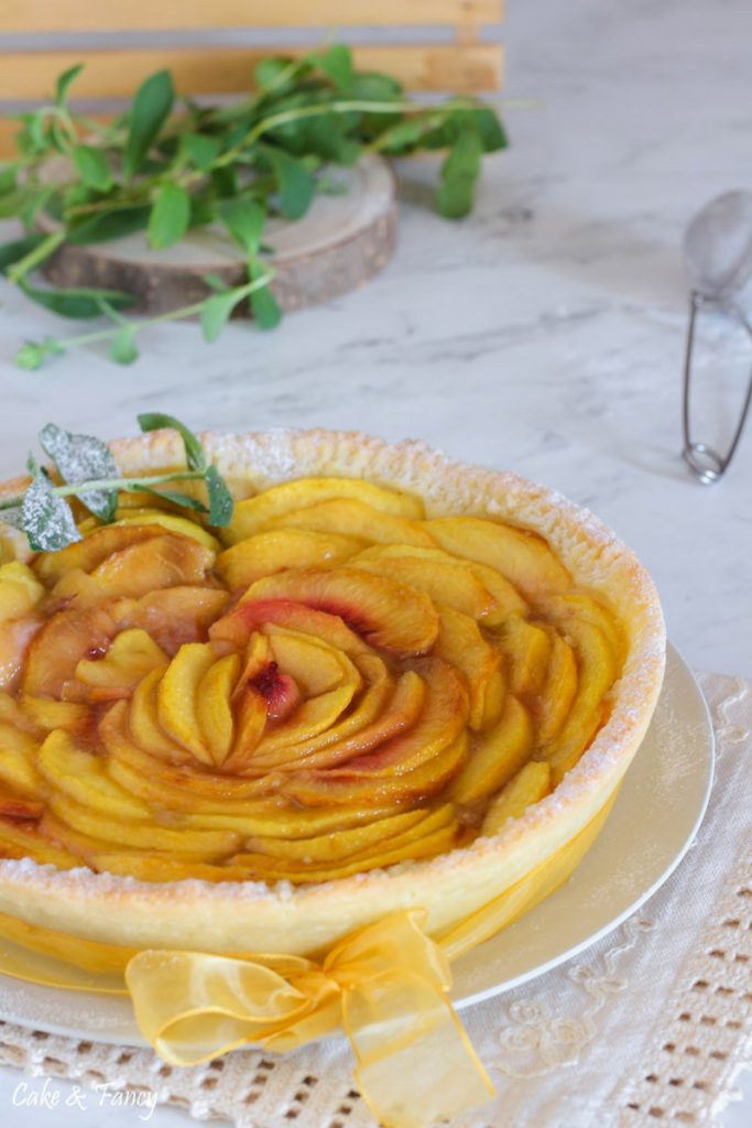 La tarte aux pêches est un véritable câlin estival, un gâteau qui, avec son parfum inoubliable, te ramène dans le temps. Une croûte de pâte sablée friable et dorée qui renferme un cœur de pêches douces et juteuses, qui fond dans la bouche. Un goût authentique, comme celui de grand-mère, qui sent la maison et les souvenirs heureux.