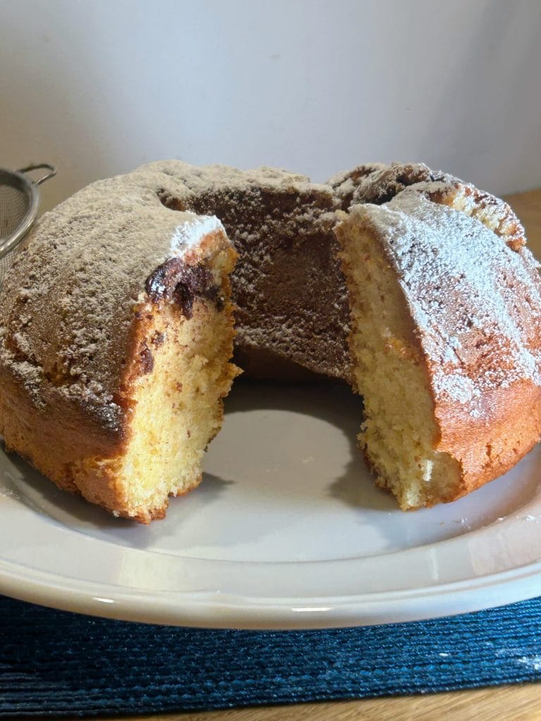 Cuire : Enfourne dans un four préchauffé à 160°C (ventilé) ou 180°C (statique) et cuis pendant environ 40-45 minutes. Fais le test du cure-dent : s’il ressort propre, le gâteau est prêt.