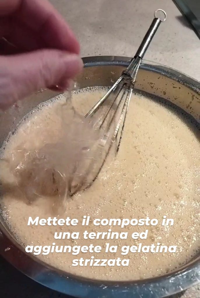 • Ajoutez au lait chaud, qui ne doit cependant pas bouillir, le mélange d’œufs et faites cuire en remuant avec le fouet. Éteignez le mélange lorsqu’il atteint une température de 82-85°, il ne doit pas bouillir sinon il risque de tourner.