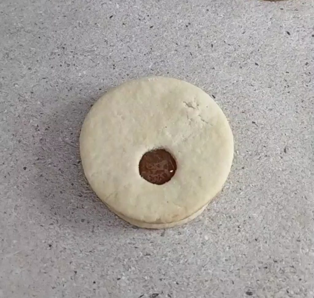 Maintenant, placez le biscuit avec le trou sur la confiture. Procédez ainsi avec tous les biscuits restants.
