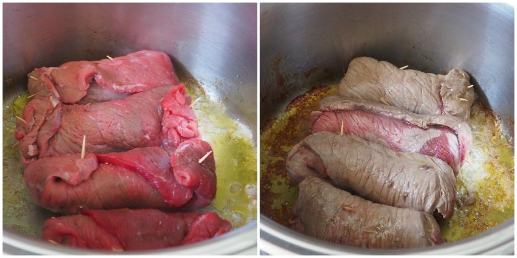 Dans une casserole, mettez un peu d’huile et faites dorer les braciole jusqu’à ce qu’elles soient dorées.