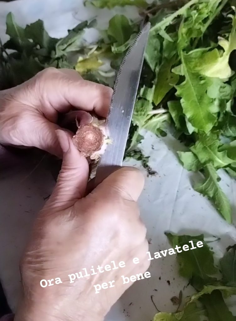 Nettoyez et lavez bien les chicorées. Rincez-les plusieurs fois, jusqu’à ce que l’eau ne contienne plus de résidus de terre, éliminez les racines, les éventuelles feuilles sèches ou abîmées.
