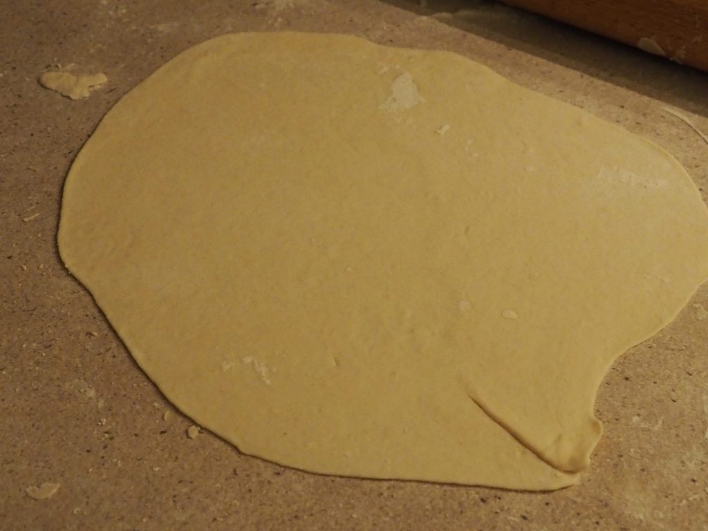 • Étalez-les avec un rouleau à pâtisserie, formant un cercle d’environ 22 cm de diamètre.