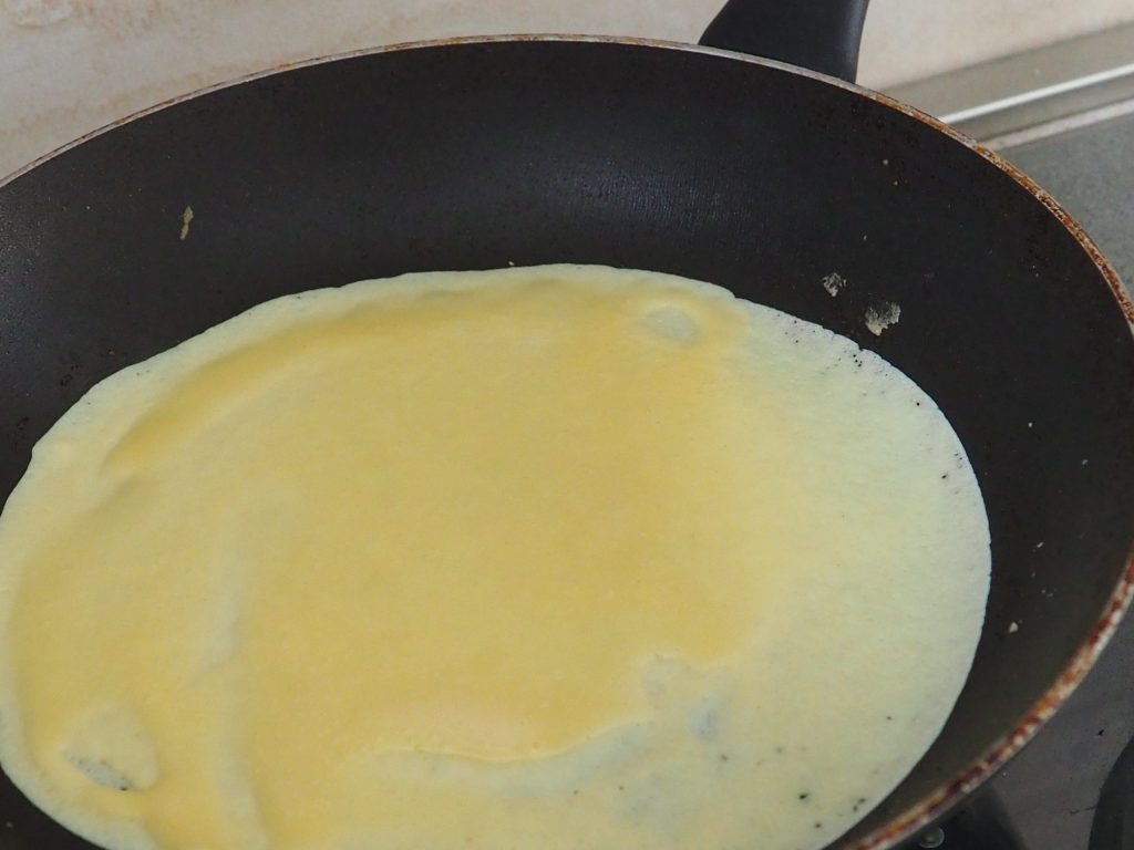 Faites tourner rapidement la poêle sur elle-même pour répartir uniformément la pâte.