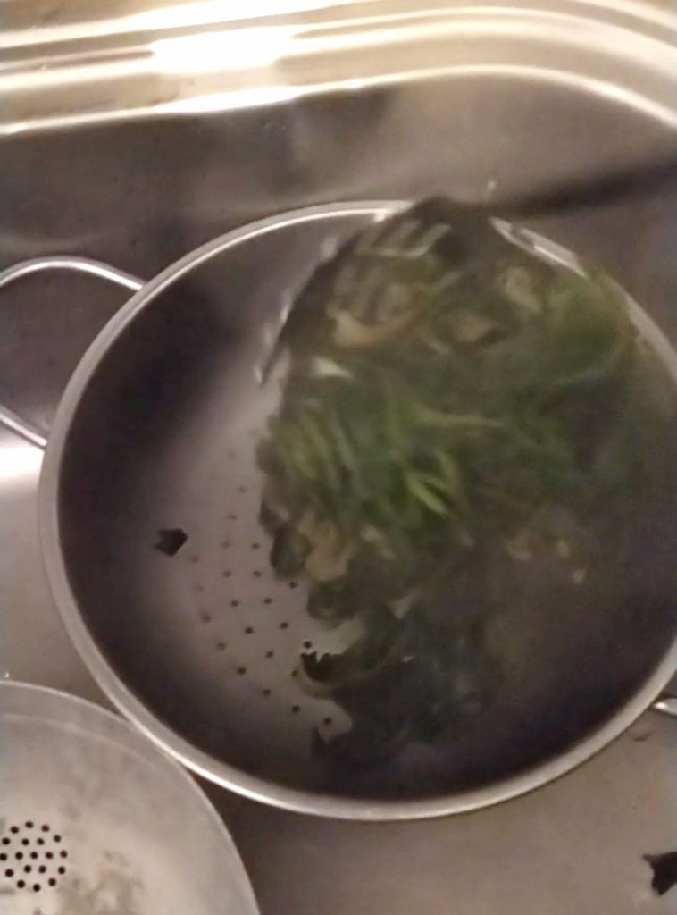Remplissez à moitié d’eau une grande casserole, ajoutez une ou deux cuillères à café de sel dès que ça bout et mettez les chicorées nettoyées. Le temps de cuisson varie selon leur tendreté, cela pourrait être de 20 à 30 minutes si elles sont plus dures. Une fois cuites, mettez-les dans une passoire pour éliminer l’excès d’eau.