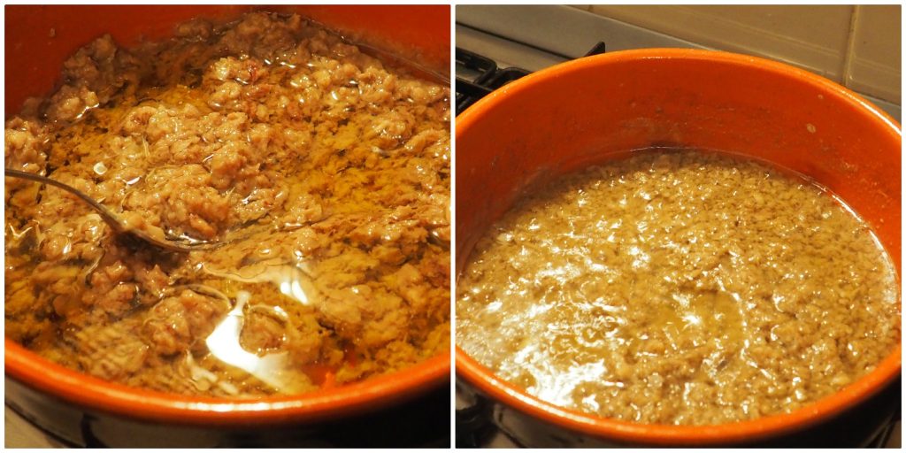 Ajoutez l’huile à la sauce et continuez à cuire pendant encore une dizaine de minutes, jusqu’à ce que les ingrédients soient bien mélangés entre eux.