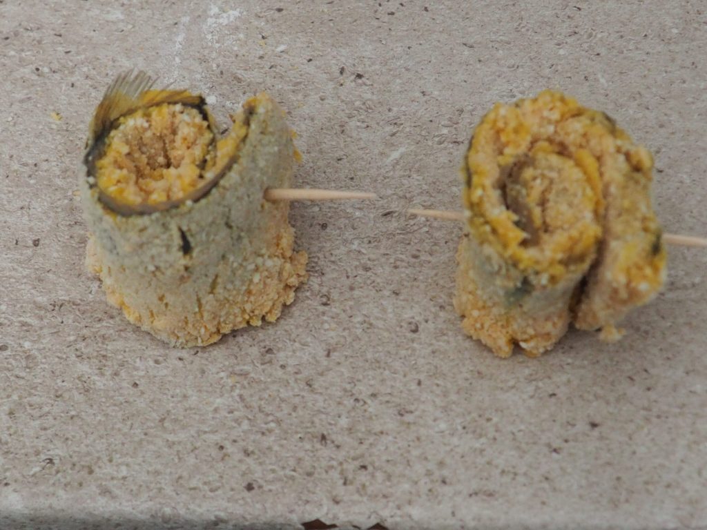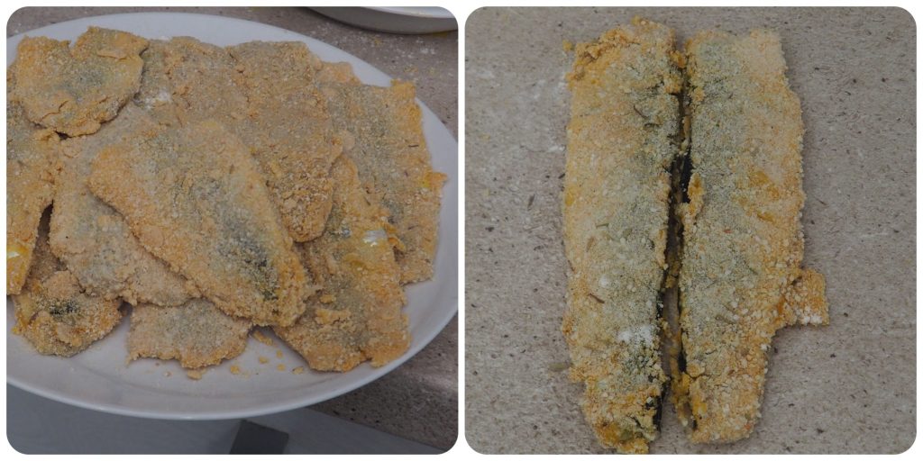 Mettez de la farine dans une assiette, battez les œufs avec le sel dans une autre, et enfin mélangez la chapelure avec le thym séché dans une troisième. Passez les filets d’abord dans la farine, puis dans l’œuf et enfin dans la chapelure.