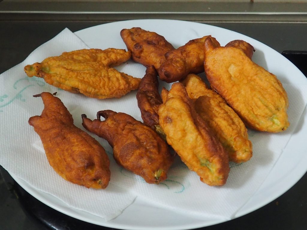 J’adore les fleurs de courgette en beignet frits, je trouve que c’est la meilleure façon de profiter pleinement de toute leur saveur. Si vous les préférez plus croustillants, je vous conseille de mettre plus d’eau et moins de lait, si vous les aimez plus moelleux, vous devrez faire le contraire. La quantité de fleurs de courgette que vous obtiendrez dépend beaucoup de leur taille, donc c’est indicatif.