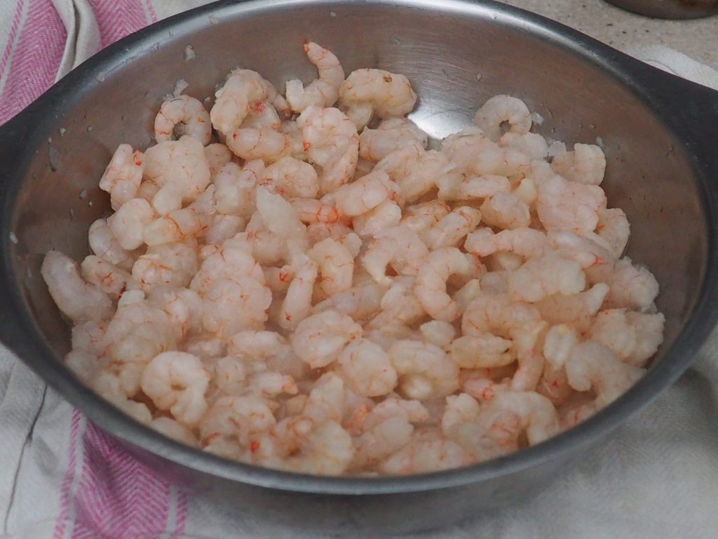 - 250 g crevettes (queues de crevettes congelées et blanchies)