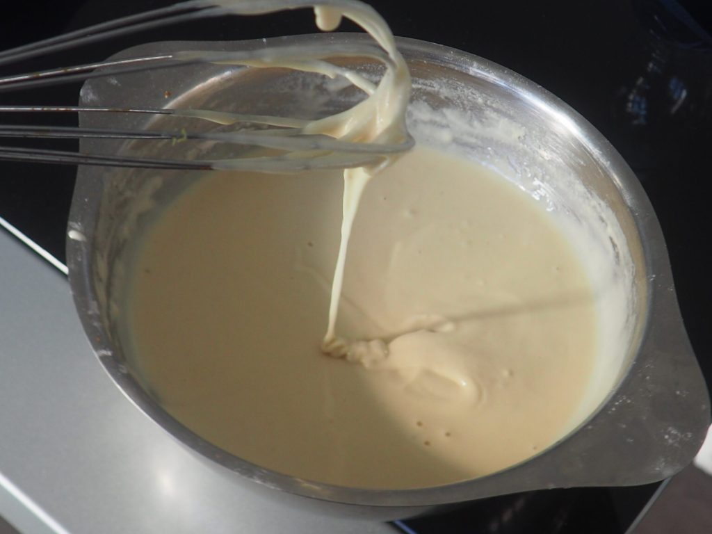 Au-dessus du bol avec l’eau, placez celui avec la pâte et laissez refroidir quelques minutes.